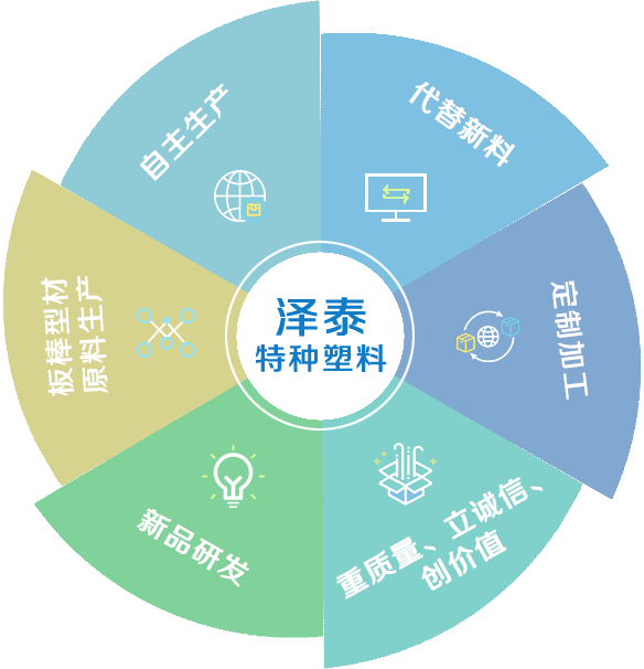 温州泽泰特种塑料有限公司专业致力于特种工程塑料产品的挤出、注塑、模压及机械加工,特别在PEEK(聚醚醚酮)、 PI(聚酰亚胺)行业有多年的生产加工经验。专业生产耐磨自润滑塑料原料、耐磨耐高温塑料原料、铁氟龙增强耐磨塑料、碳纤维增强塑料、导电防静电塑料、PI原料、PPS原料、peek原料、PEI原料、高温尼龙原料、PEEK板材、PEEK棒材、PEI板材、PPSU棒材、PPS板材、PPS棒材、PPS加纤、PEI加纤、PEEK加纤、防静电peek原料、防静电pps原料、耐磨pi颗粒、pps加碳纤维、peek加碳纤维、高温尼龙等,为不同行业提供特种工程塑料成品零配件及半成品型材的研发、设计、生产一体化解决方案。